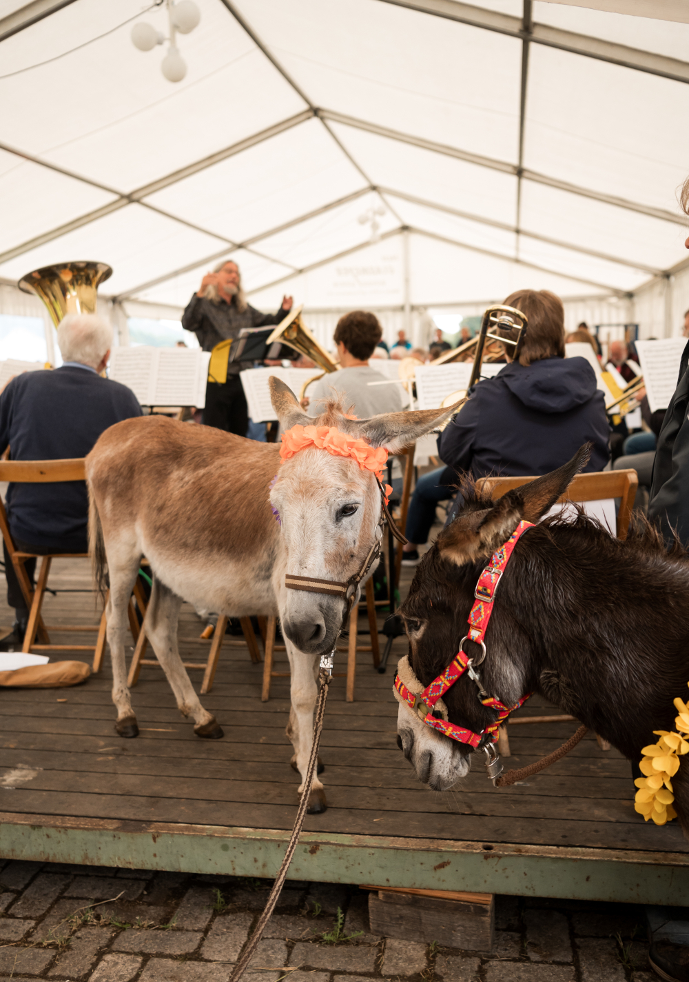 - Geschmückte Esel ganz nah am Orchester