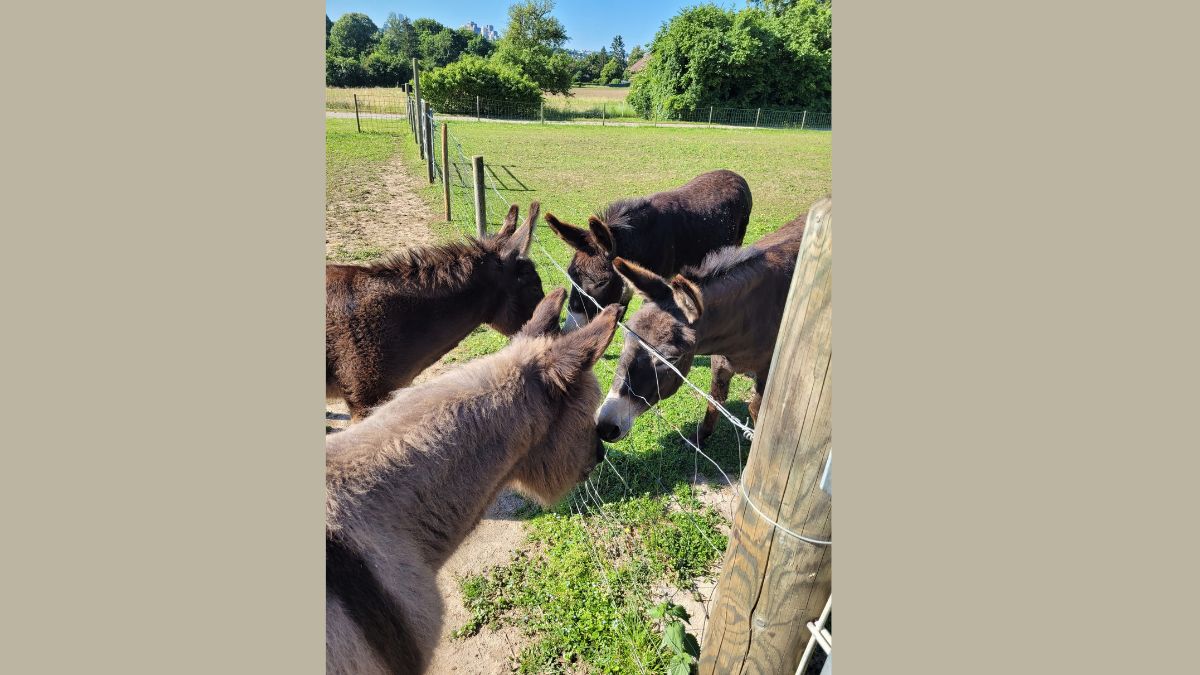 „Wir sind mit den Eseln wandern gegangen. Vorher haben wir sie gestriegelt. In der Nacht hat es gewittert. Am nächsten Tag hatten wir Eselkunde. Am Nachmittag durften wir mit dem Traktor im Anhänger fahren. Nachmittags haben wir eine Schnitzeljagd gemacht.“