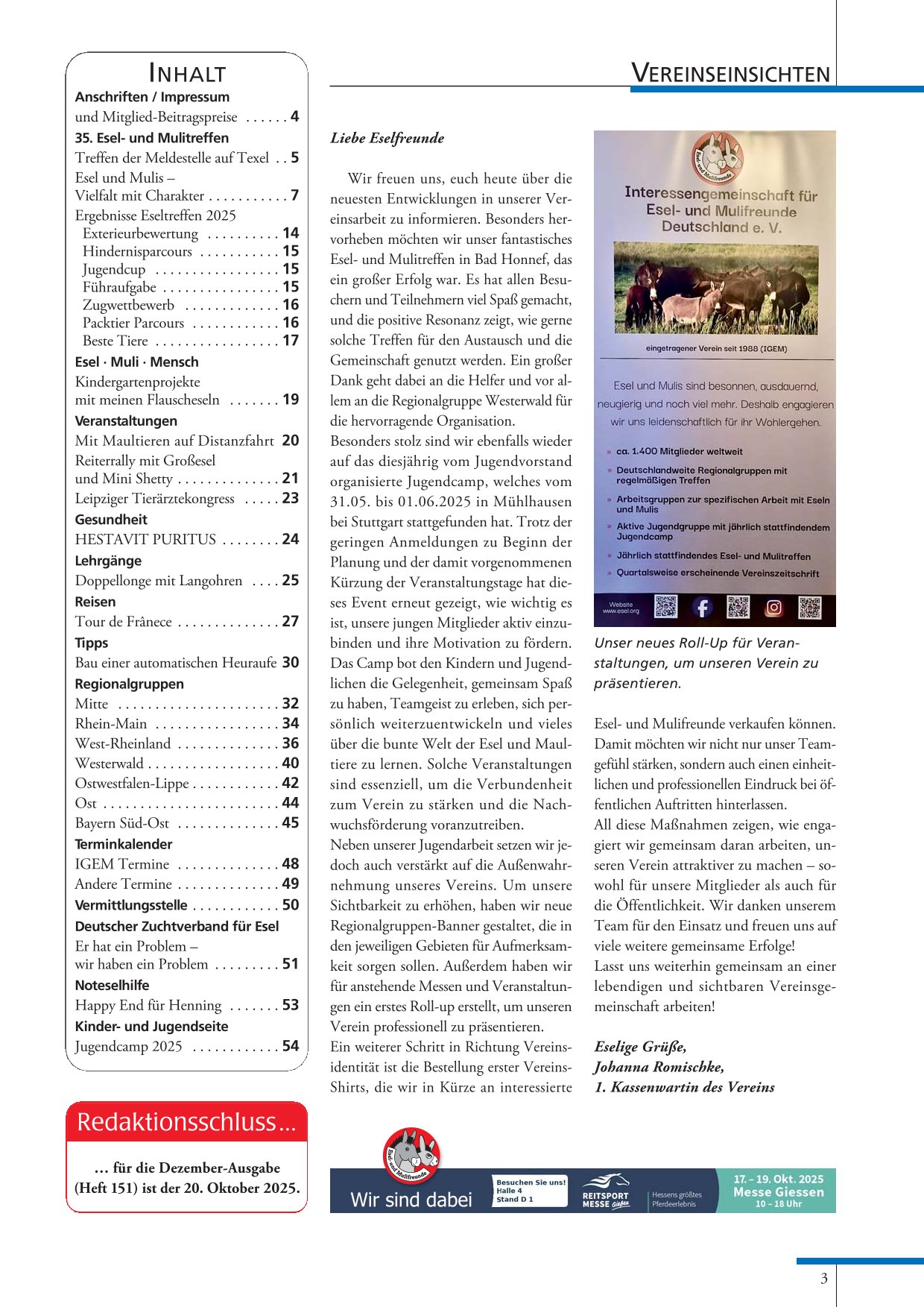 - Inhaltsverzeichnis Esel-Post 150, September 2025
