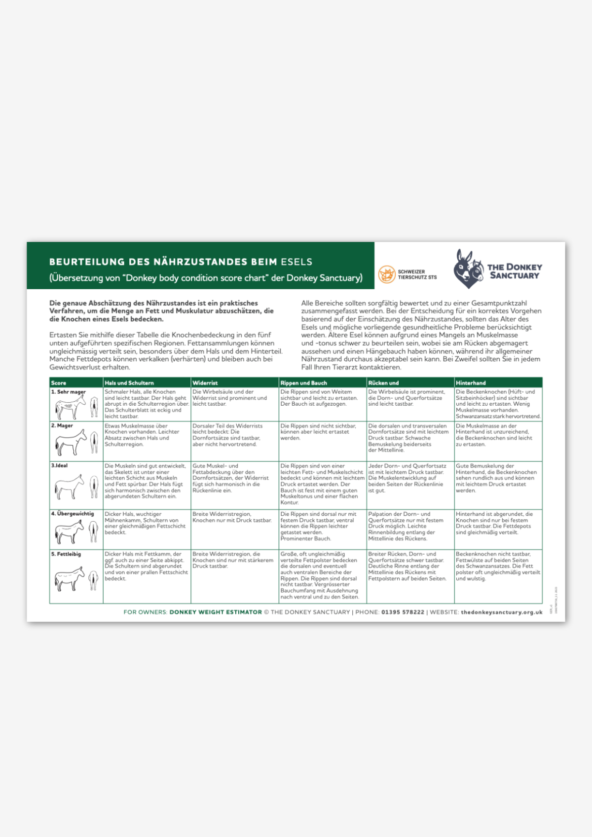 Beurteilung des Nährzugstandes beim Esel von The Donkey Sanctuary, übersetzt vom Schweizer Tierschutz STS.